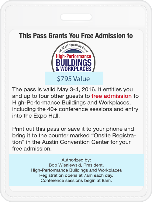 Share the discovery of best practices and technologies that define a high-performance building. Invite your co-workers to High-Performance Buildings + Workplaces with the All-Access Pass.
